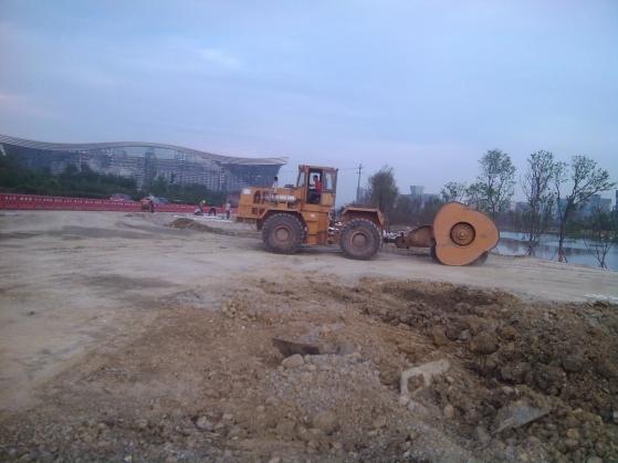 沖擊碾壓機在繞城劍南大道施工現(xiàn)場