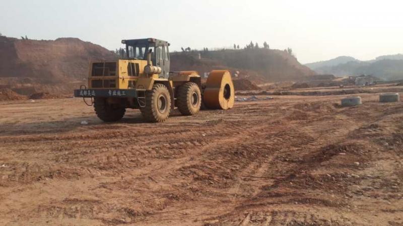強夯和沖擊碾壓設(shè)備正在簡陽機場施工現(xiàn)場...