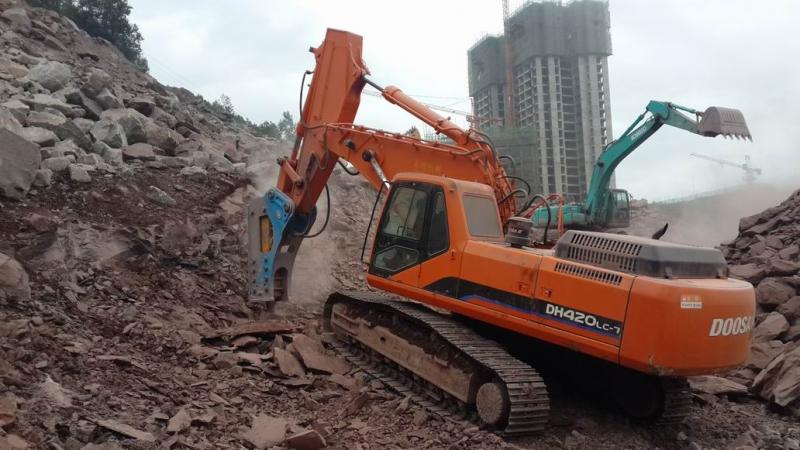 斗山420型配175破碎錘在巴中施工現(xiàn)場