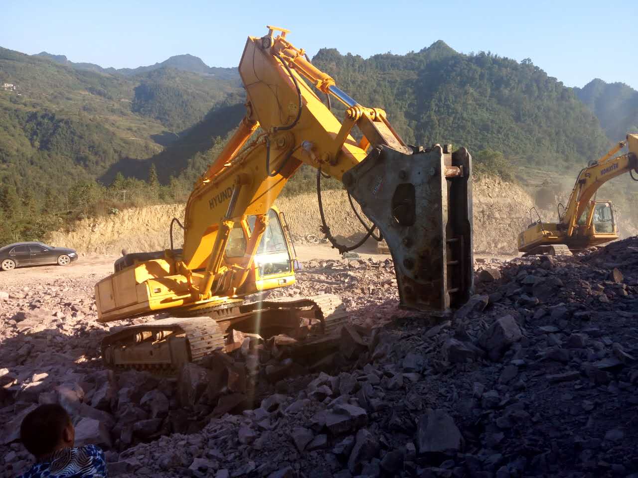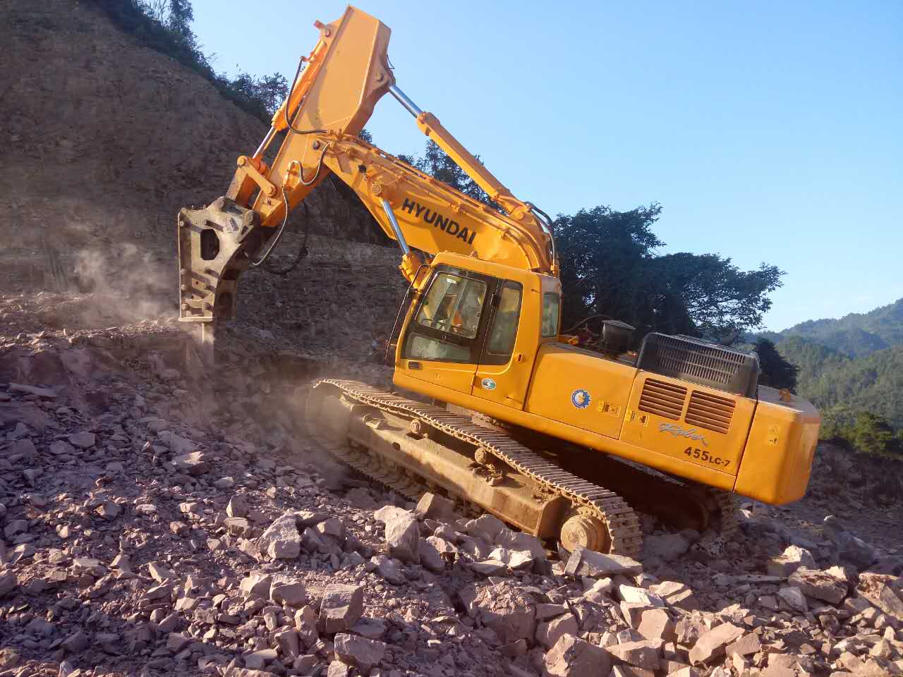 現(xiàn)代455型短臂配古河175型炮機正在重慶施工作業(yè)