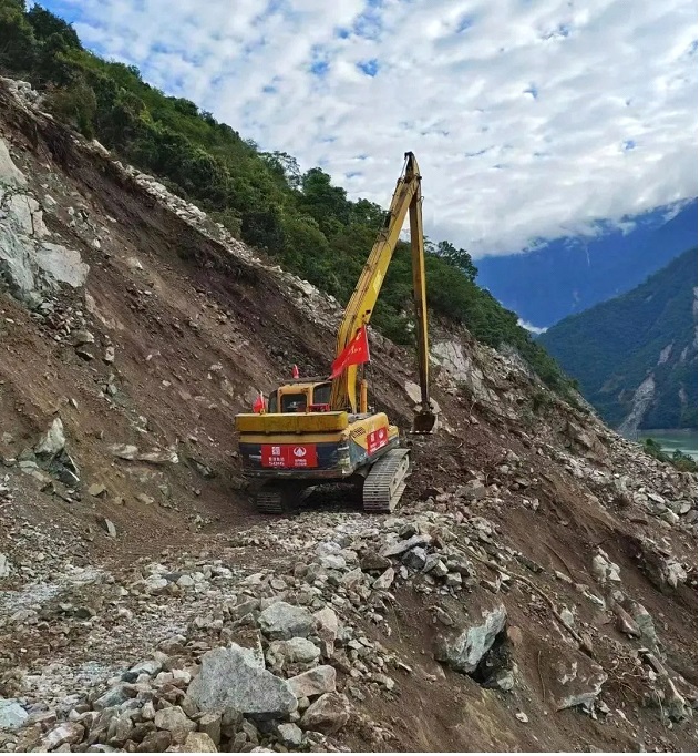 在作業(yè)環(huán)境極其危險的條件下,昊遠機械搶險小組爭分奪秒,發(fā)揚“道路不通我不退”的精神,搶當(dāng)開路先鋒,搶修救災(zāi)應(yīng)急通道。搶通的塌方點將為后續(xù)施工打下基礎(chǔ),確保了后續(xù)設(shè)備能夠順利清障,機械搶險隊伍合力出擊,力爭盡快搶通道路。