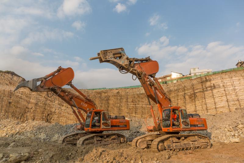 斗山500型鉤機和175型炮擊正在貴陽工地施工 ...