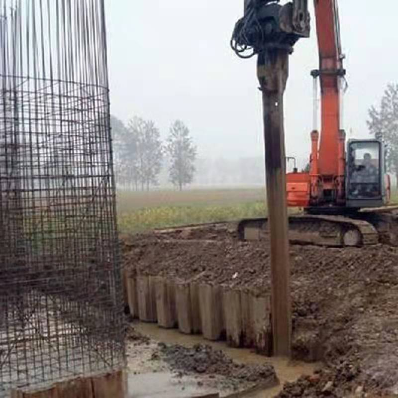 使用挖掘機(jī)打樁機(jī)打樁步驟為:1.吊樁;2.檢查;3.保持垂直度;4.對準(zhǔn)位置,放下樁機(jī),使其緩慢沉入土中一定高層度,(如有需要,安裝樁帽);5.檢查樁位與軸線;6.振動(dòng)沉樁至設(shè)計(jì)高層度;7.將樁機(jī)移到下一支樁繼續(xù)作業(yè)。